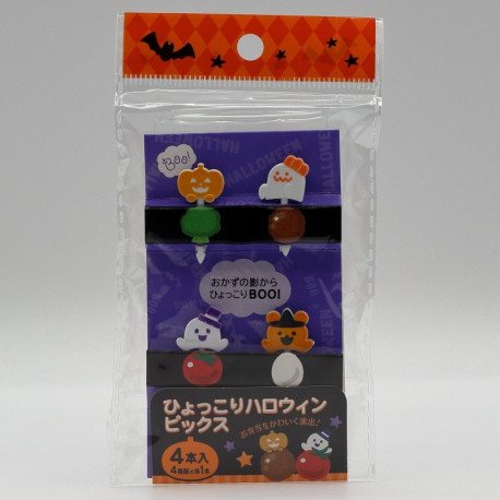 4 niedliche Bento food picks in typischen Halloween Designs.