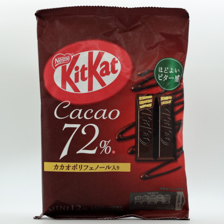 Die bisher wahrscheinlich beste KitKat Kreation für Schockladengenießer. Die knusprigen Waffeln sind von einer dicken Schokoladenschicht mit 72% Kakaoanteil bedeckt.