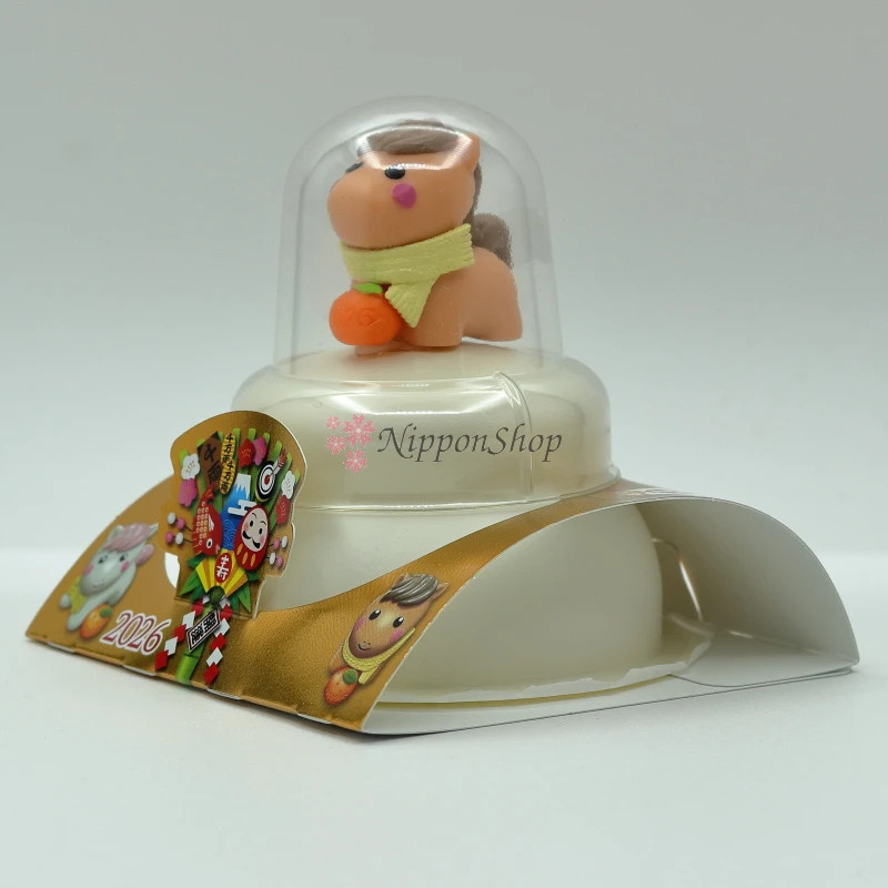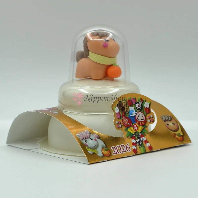 Kagami Mochi - mit einem weißen Pferd (Uma) als Dekoration oben drauf, denn 2026 wird das Jahr des Pferds sein.