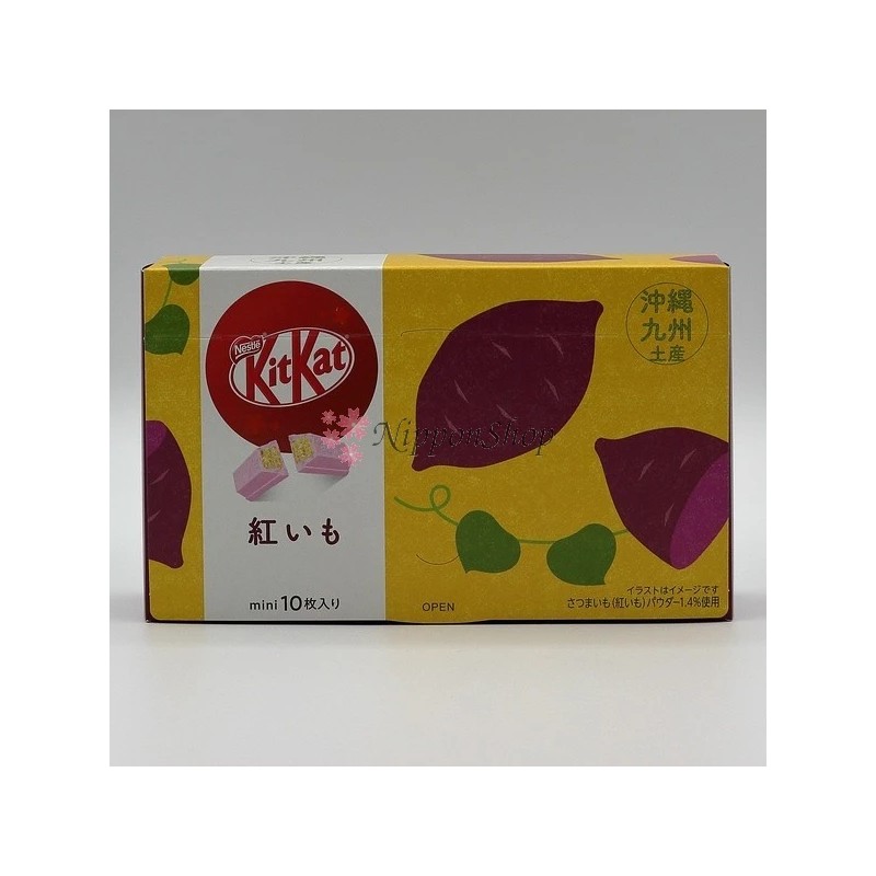 Diese regionale KitKat Edition widmet sich den schmackhaften Beni Imo, den schmackhaften violetten Süßkartoffeln aus Okinawa und Kyushu. Normalerweise nur in Okinawa und Kyushu erhältlich.