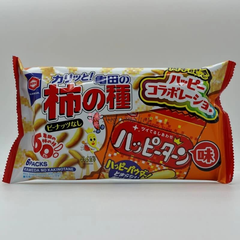 Ein Jubiläumsprodukt zum 50-jährigen Bestehen von Happy Turn und zum 60-jährigen Bestehen von Kameda’s Kakinotane. Kameda hat den einzigartigen „süß-salzigen“ Geschmack von Happy Turn mithilfe der charakteristischen Würzmethode von Kameda’s Kakinotane nachgebildet.