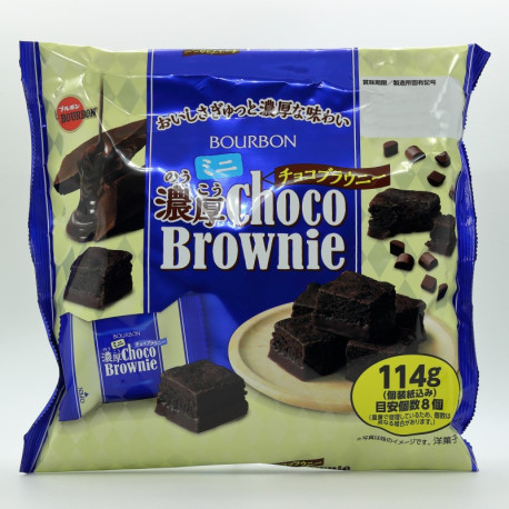 Mini chocolate brownies from Bourbon, baked with finest chocolate and with a thin chocolate coating over the bottom half.