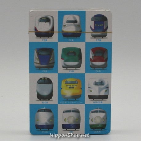 Lovely designed playing cards (52 cards plus 2 Jokers) with different Shinkansen drawings.