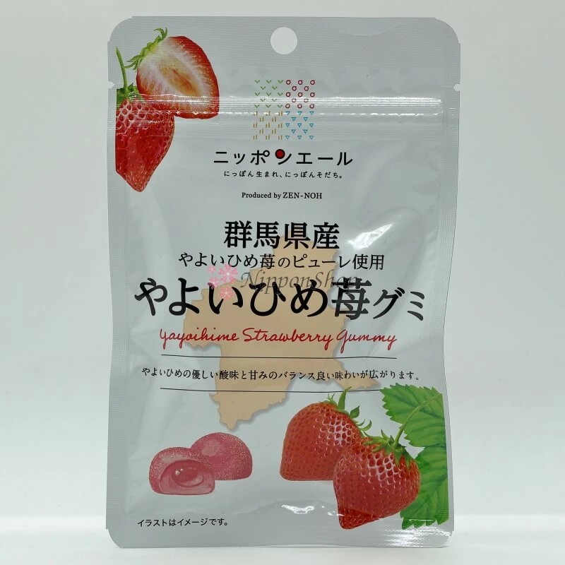 These gummies are made using puree from Gunma Prefecture-grown Yayoi Hime strawberries.