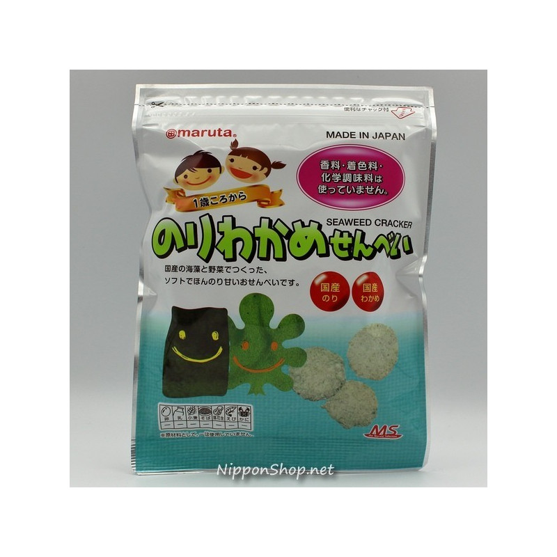 Seaweed rice cracker with with nori and wakame for children from 1 but also for adults a delicious treat.