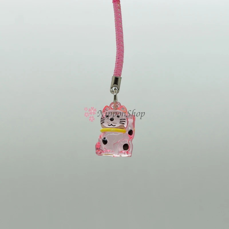 Pink-clear Manekineko with small bell for use as keyholder, to attach to bags or other stuff.