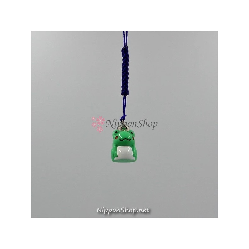 Green frog with a small bell to put on to your mobile phone or other belongings.